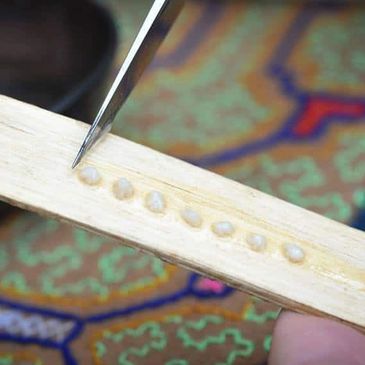 Na het verwijderen van de Kambo wordt 'Sangre de Grado' (Drakenbloed) aangebracht om snelle genezing te bevorderen en infecties te voorkomen.